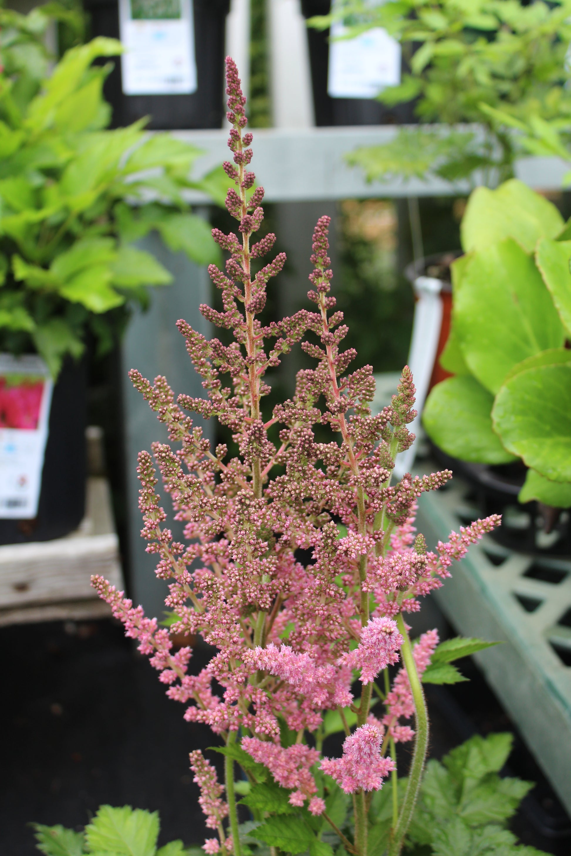 Astilbe 'Visions in Pink' is a charming perennial that adds a splash of delicate color to shaded areas. This variety showcases feathery plumes of soft, pink flowers that rise above its lush, fern-like foliage. With a compact and clumping growth habit, 'Visions in Pink' reaches a height of around 18-24 inches, making it an excellent choice for borders, woodland gardens, or as a focal point in containers, where its elegant blooms and attractive foliage can create a serene and romantic atmosphere.