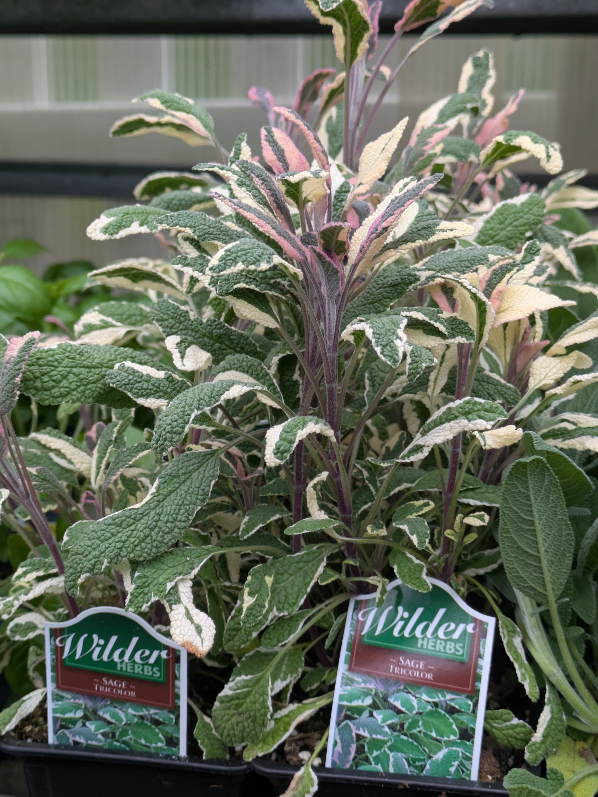 Sage 'Tricolor' is an eye-catching ornamental herb with a blend of green, white, and soft purple-pink variegated leaves. While it has a slightly milder flavor than traditional culinary sage, its foliage is still suitable for cooking, especially in savory dishes and herbal blends. This variety is also highly valued for its decorative appeal in mixed containers, borders, and herb gardens.